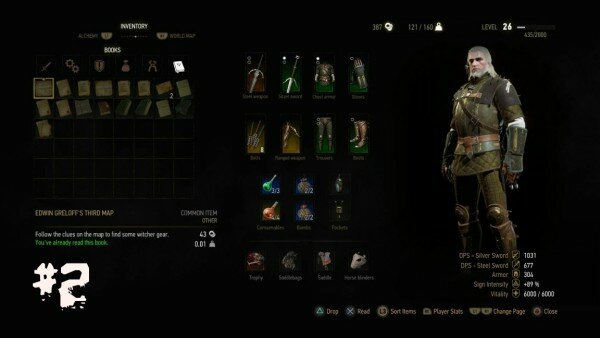 Во время путешествий Геральта по миру, вы встречаете множество книг, писем и записок, и все они накапливаются у вас в инвентаре. Организация инвентаря, мягко говоря, была никакая, ведь приходилось среди прочего хлама искать нужные масла, отвары и эликсиры. Теперь все иначе - на этой вкладке будут отображаться только то, что вы используете и что действительно нужно.